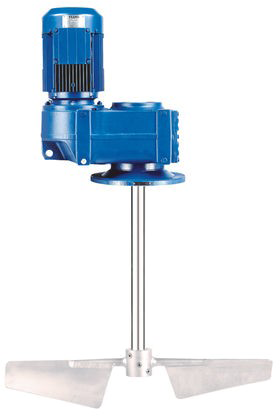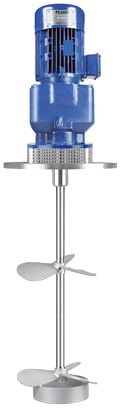 Industrial agitators are designed for a wide range of volumes and pressurized or unpressurized vessels. The unit can either be directly driven by a motor or together with a gearbox. A connection of the motor via IEC-adapter or a gear motor are also possible. The shaft can either be sealed by a mechanical seal or other seal types.