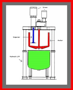 The Dual Shaft Mixer includes an Anchor agitator and a High Speed Disperser.The anchor feeds product into the high speed disperser blade and ensures that the mixture is constantly in motion. The anchor can be provided with scrapers to remove materials from the interior vessel walls to enhance the heat transfer capabilities of the mixer. Both agitators are available for variable speed operation.A second high speed dispersion mixer can also be added for increased shear. Multiple blades on each of the disperser shafts can also provide added mixing.