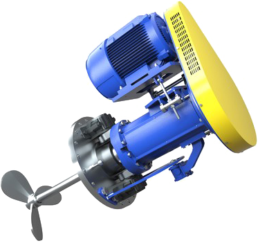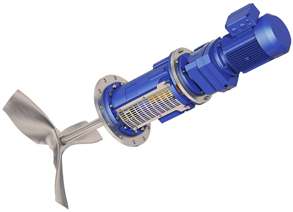 Industrial agitators are designed for a wide range of volumes and pressurized or unpressurized vessels. The unit can either be directly driven by a motor or together with a gearbox. A connection of the motor via IEC-adapter or a gear motor are also possible. The shaft can either be sealed by a mechanical seal or other seal types.